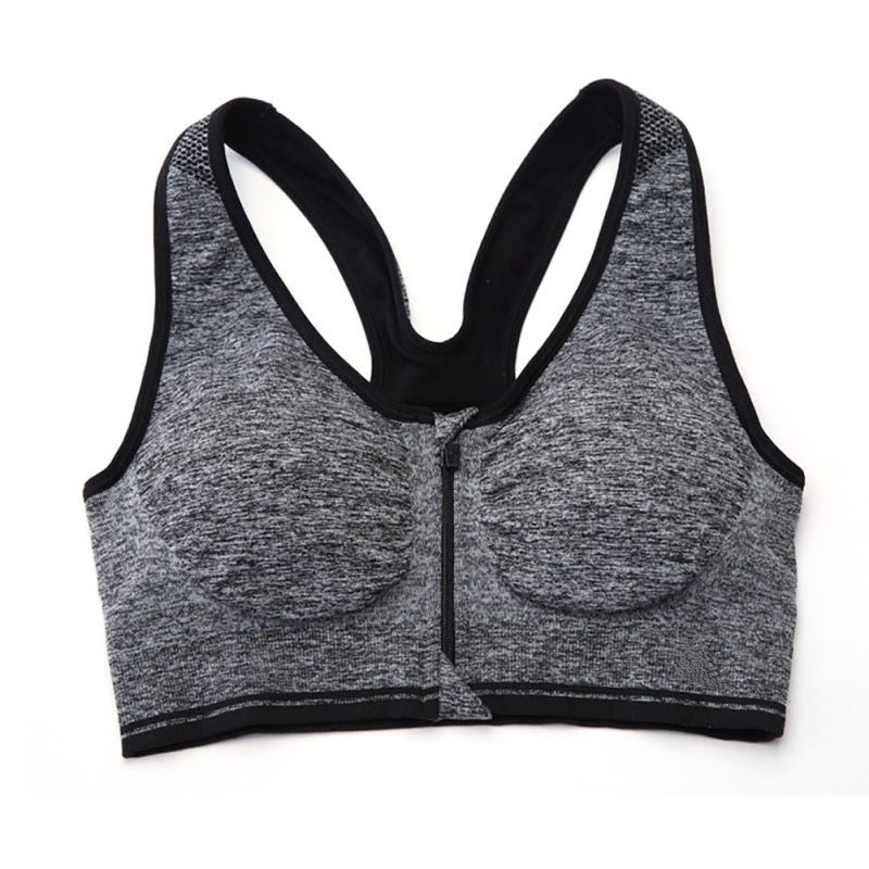 Front Zip Women Racerback exercise Bra Fitness Padded Stretch Workout Top Tank NW