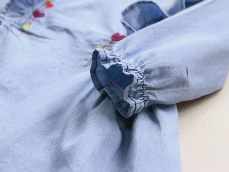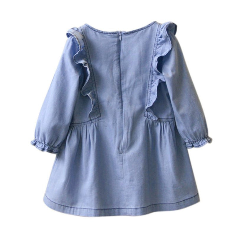 Girl Denim Dress Retro Kids Long Sleeve Jeans Tutu Dresses 1-6Y Children Clothing NW