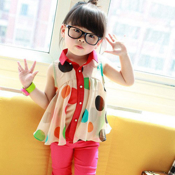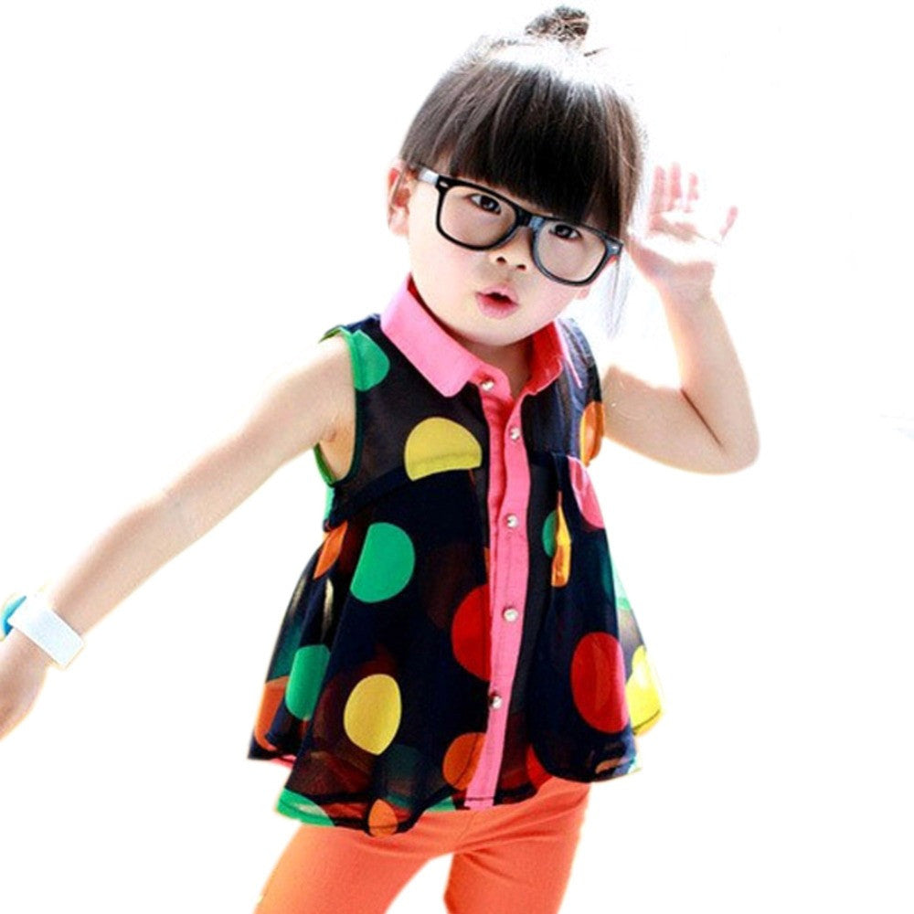 Girls Child Shirts Polka Dot Lapel Sleeveless Chiffon Party Tops Blouse 2-7Y NW