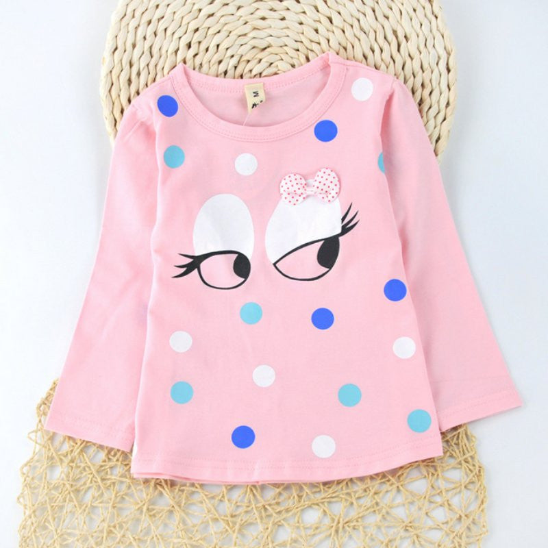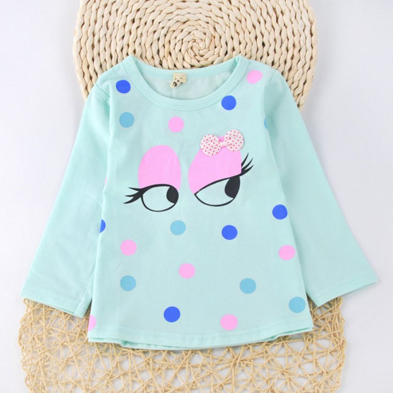 Hot Baby Kids Girl Clothes Cartoon Print T-shirts Tops Cute Cotton Long Sleeve Casual Children Tee Shirt Top NW