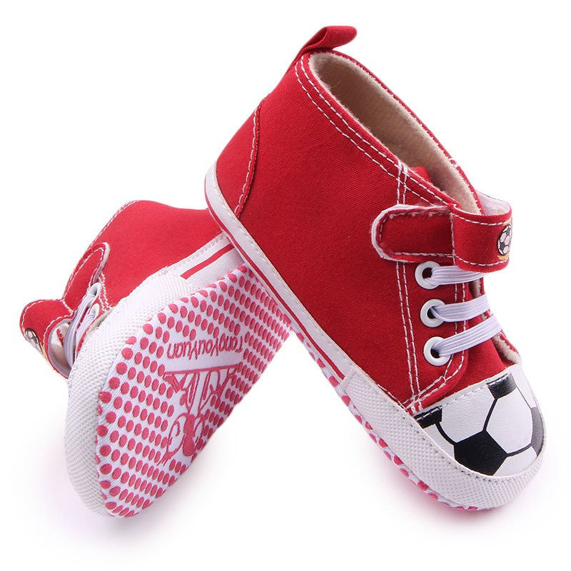 HOT Toddler Infantil Boys Girls Football Pattern Crib Shoes Sneaker Kid Lace-Up Soft Sole Baby Shoes Prewalker NW