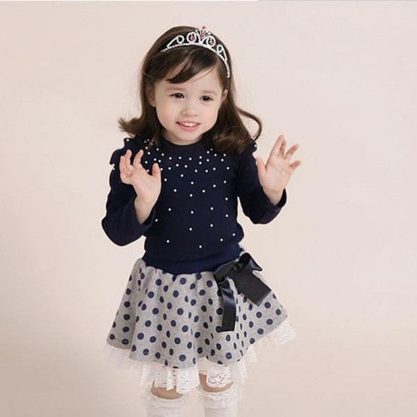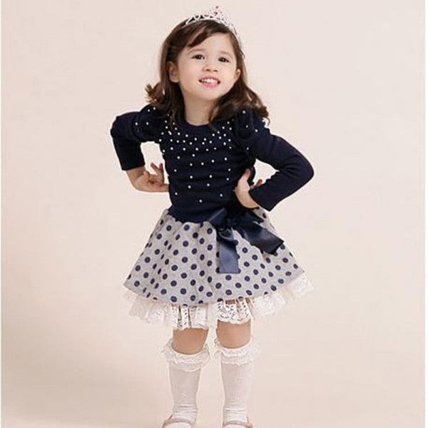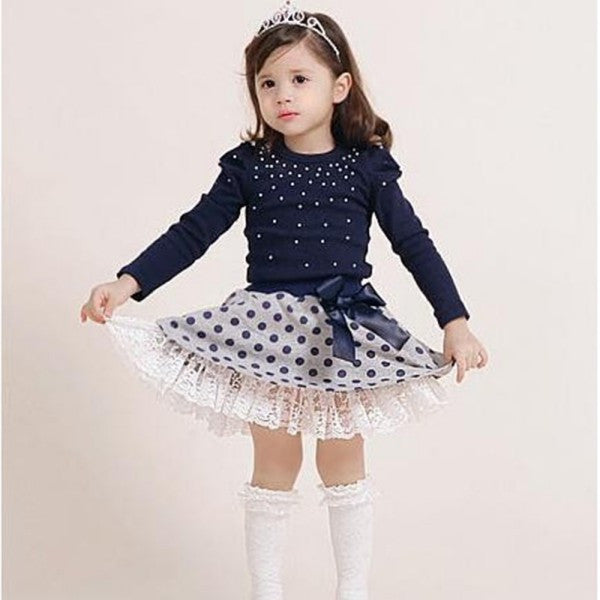 Kids Baby Girls 2PCS Clothing Sets Long Sleeve T-shirts Tops Polka Dots Mini Skirts Clothes Set Costume NW