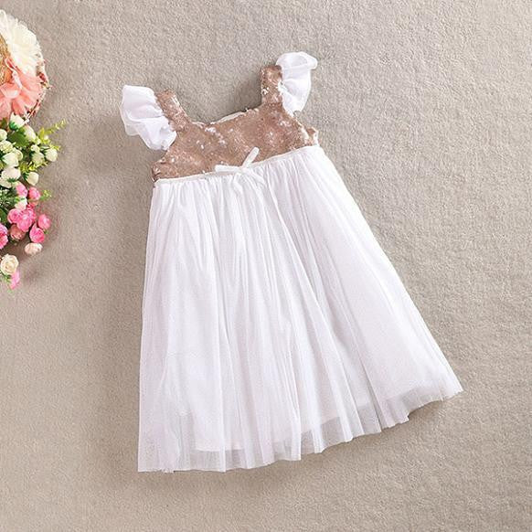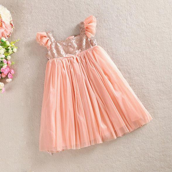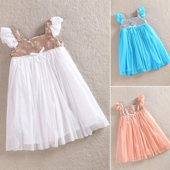 Kids Baby Girls One Piece Dress Ruffled Sleeve Sequins Pleated Dresses 1-5 Years NW
