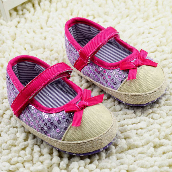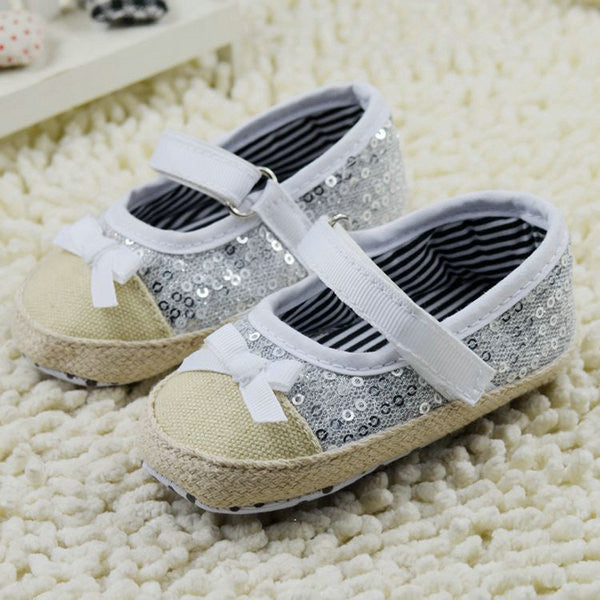 Kids Girls Bowknot Bling Sequin Baby Shoes Infant Prewalker Toddler Crib Shoes NW