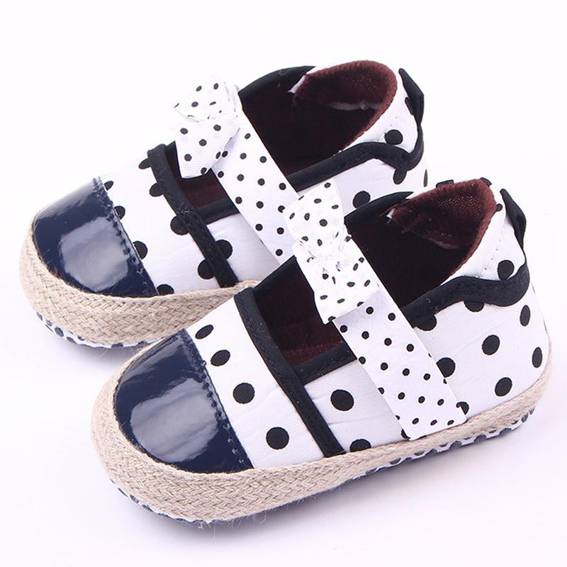 Kids Girls Dot Bowknot Baby Shoes Soft Toddler Shoes PU Cotton Outdoor Shoes 0-12M NW
