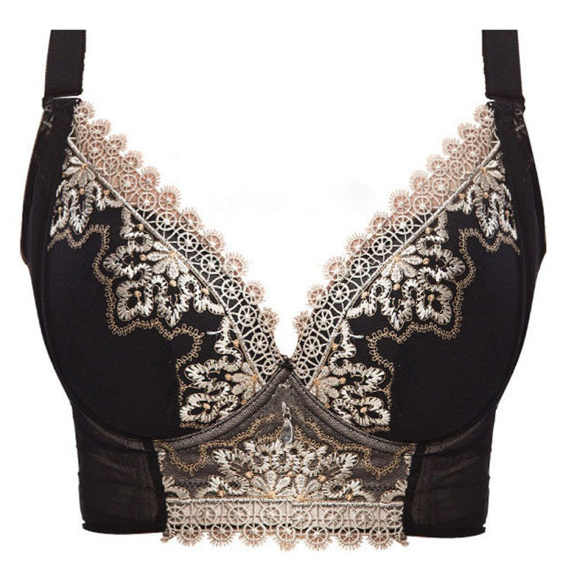 Lady Lace Floral Embroidery Plunge Push Up Side Support Padded Bra 34-40 Cup B NW