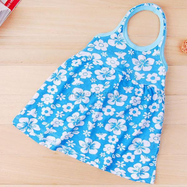 Lovely Baby Girls Backless Floral Pattern Halter Neck Beach Dress 2-7Year NW