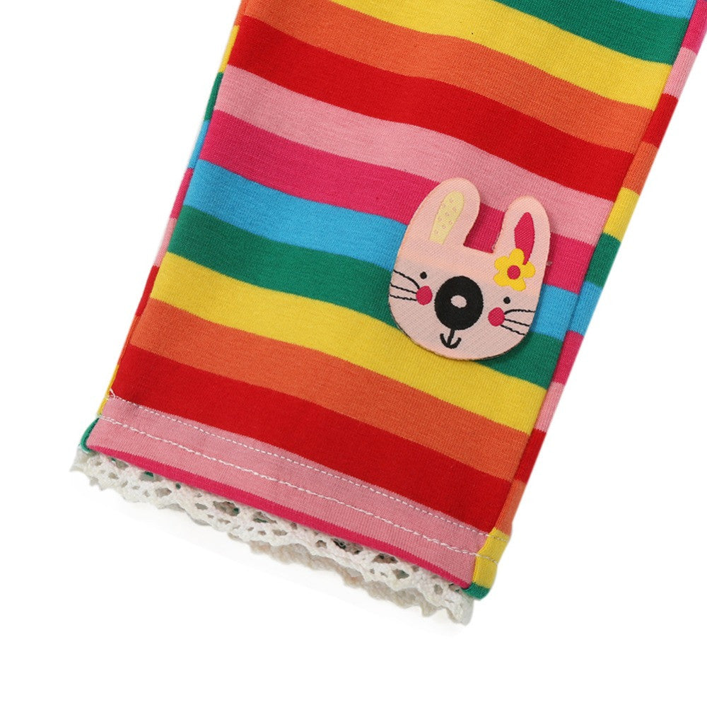 Lovely Cotton Knitted Children Pants Rainbow Striped Boy Girl Trousers Baby Kids Clothing 1-5Y Elastic Leggings NW