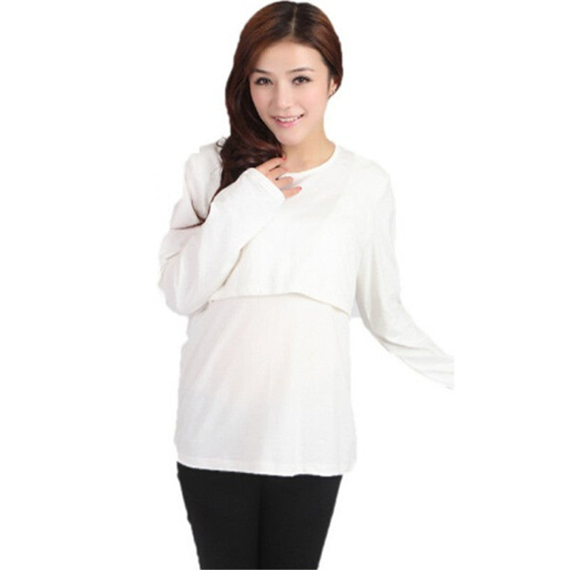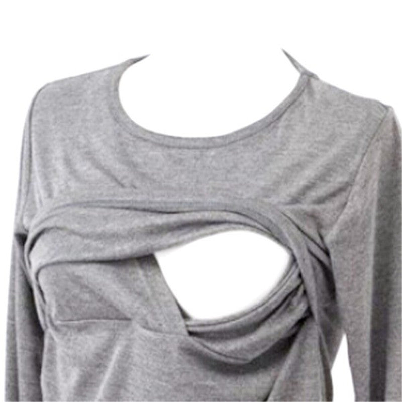 Maternity Clothes Nursing Long Sleeve O Neck T shirt Pregnant Womens Tops NW