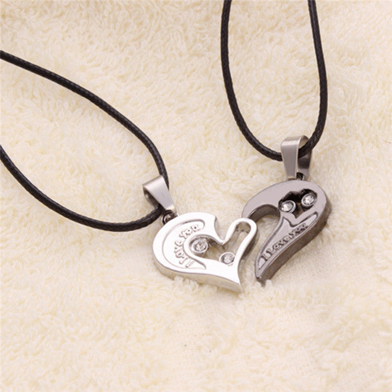 Men Women Lover Couple Necklace I Love You Heart Shape Pendant Stainless Steel NW