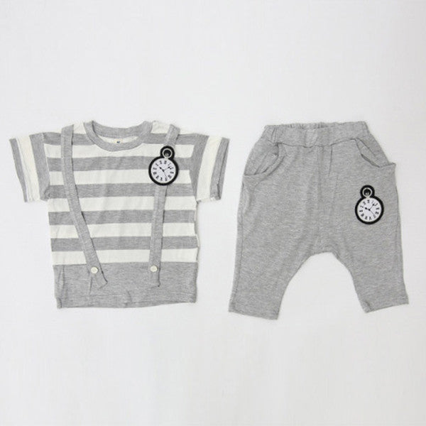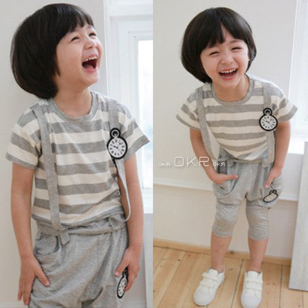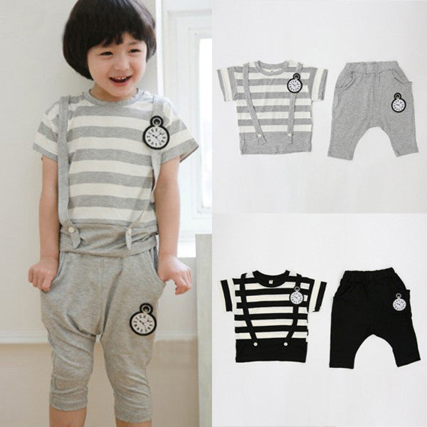New Kids Boys Clothing Sets Baby Straps Striped Shirts Harem Pants Suit Cotton 2pcs Set Outfits Clothes 0-4Y NW