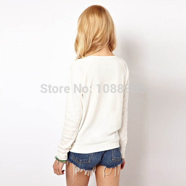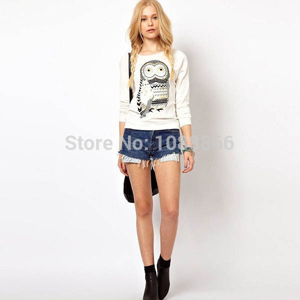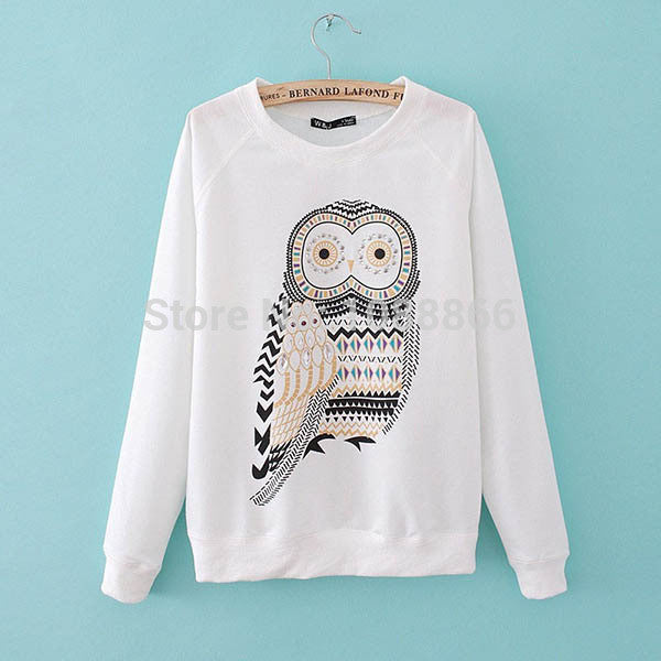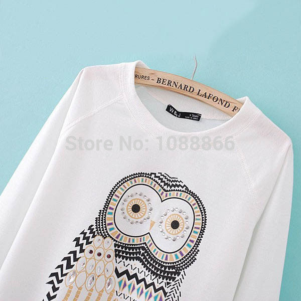 New Women Girls Cute Cartoon Owl Print Beaded Long Sleeve Shirt Pullover Crew Neck Sweatshirt Tops NW