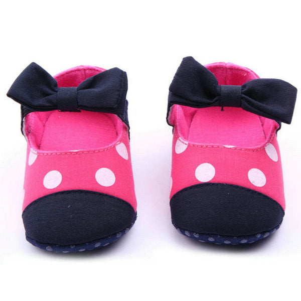 Newborn Baby Girls Polk Dot Bowknot Crib Shoes Infants Walking Shoes 0-12M NW