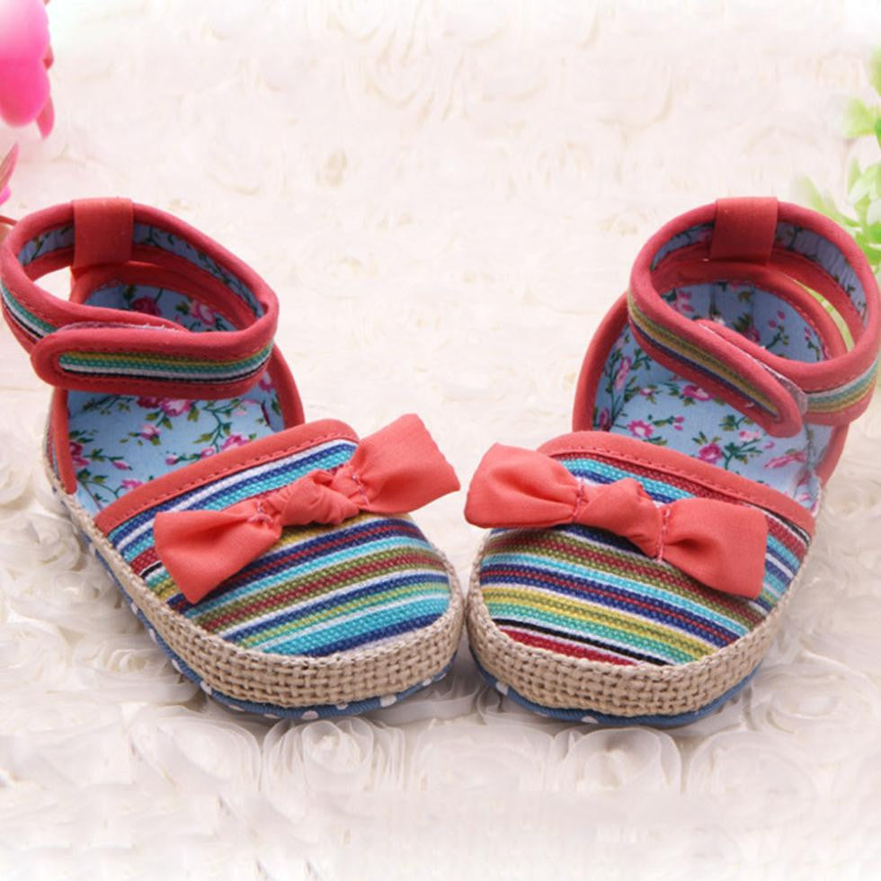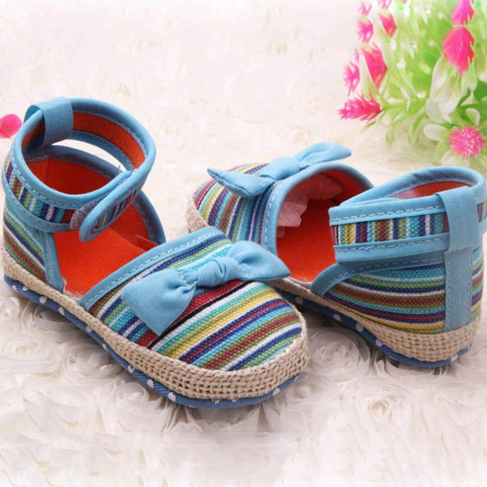 Newborn Baby Kids Stripes Bowknot Crib Shoes Toddler Anti Slip Walking Shoes New NW