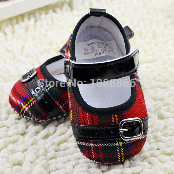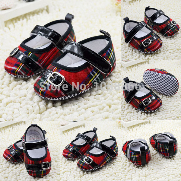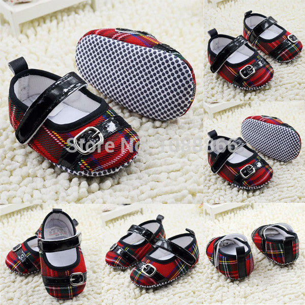 NewInfant Girls Non-Slip Plaid Crib Shoes Toddler Soft Sole Flattie Baby ShoesFree ping NW