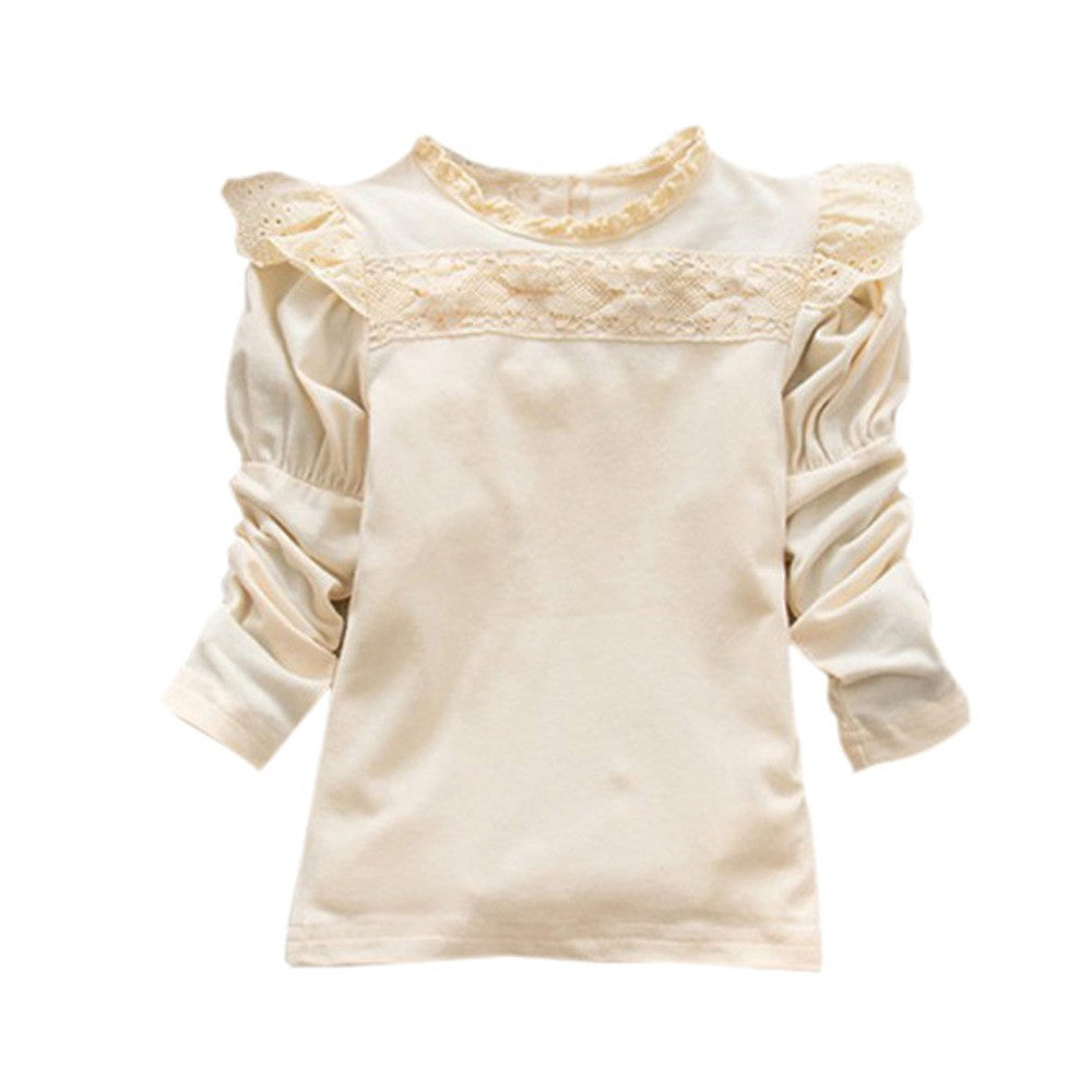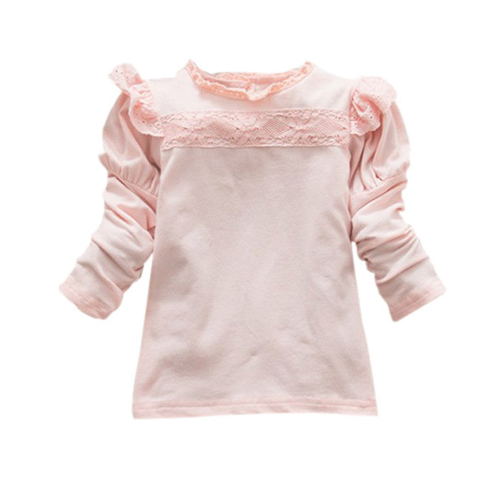 Pretty Girls Kids Baby Long Sleeve Lace Ruffled Collar Cotton Shirts Tops 0-4Y NW