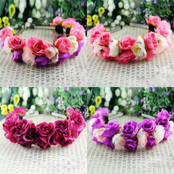 Rose Flower Crown Headbands for Women Wedding Festival Double Row Floral Garland Hairbands NW