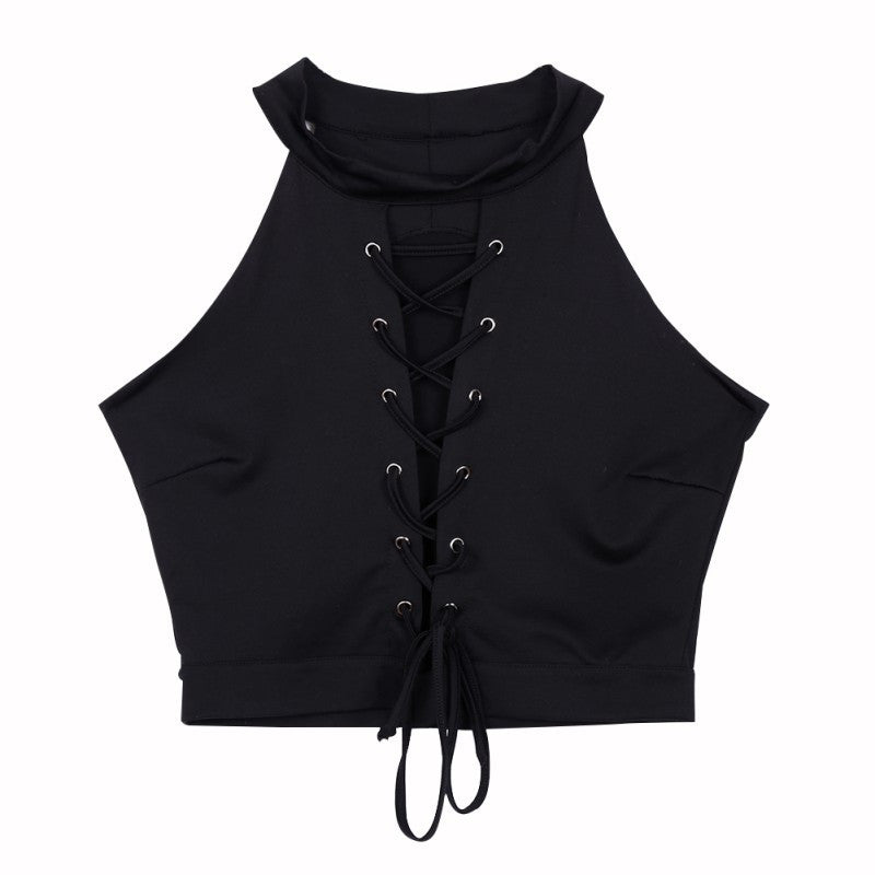 Sexy Halter LACE-UP Bandage Crop Tops Women Sleeveless Tee T-Shirt Blouse NW