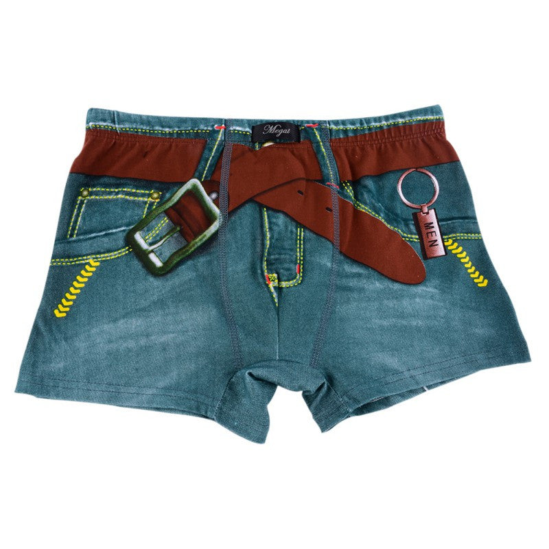 Sexy Men Printed Cotton Spandex Thong Jockstrap G-string Underwear Boxer M-XXL NW