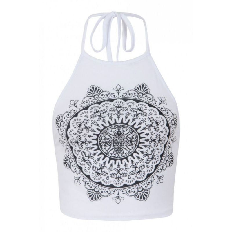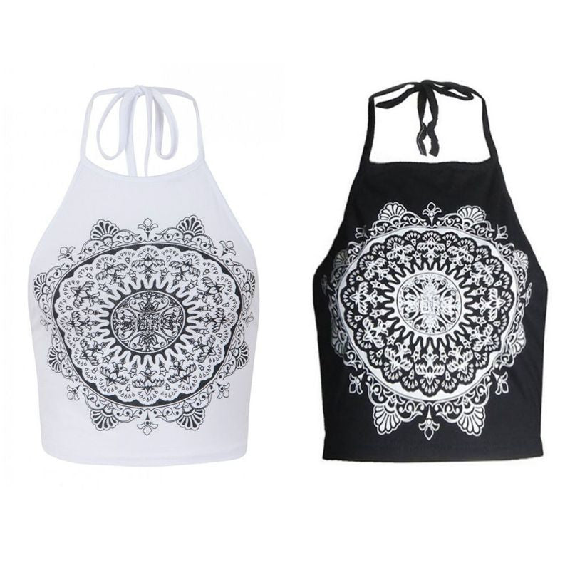 Sexy Women Sleeveless Backless Crop Tops Floral Halter Tank Tops Casual Vest T-shirt NW