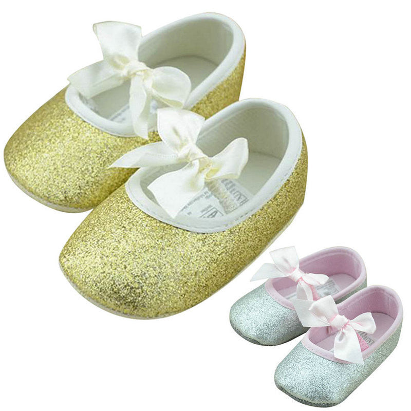 Sweet Toddler Baby Girls Shine Antislip Bowknot Soft Sole Ribbon Crib Shoes NW