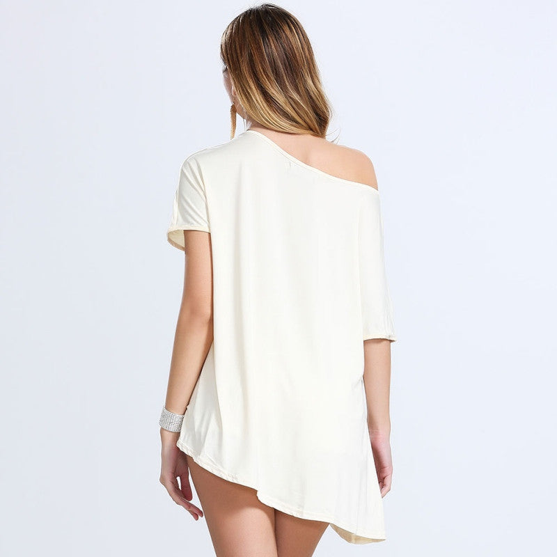 T Shirt Women Tops Casual Loose T Shirts Irregular Tees Batwing Sleeve Off Shoulder Tops Plus Size NW