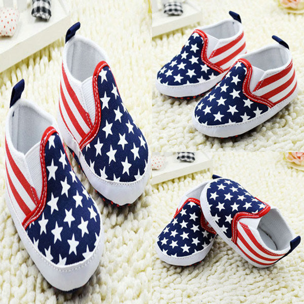 Toddler Star Print Crib Shoes Kids Boys US Flag Baby Shoes Soft Stripe Prewalker NW