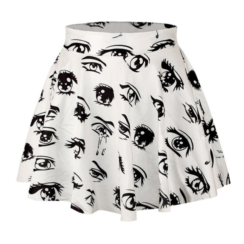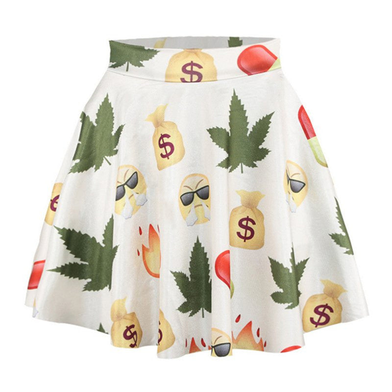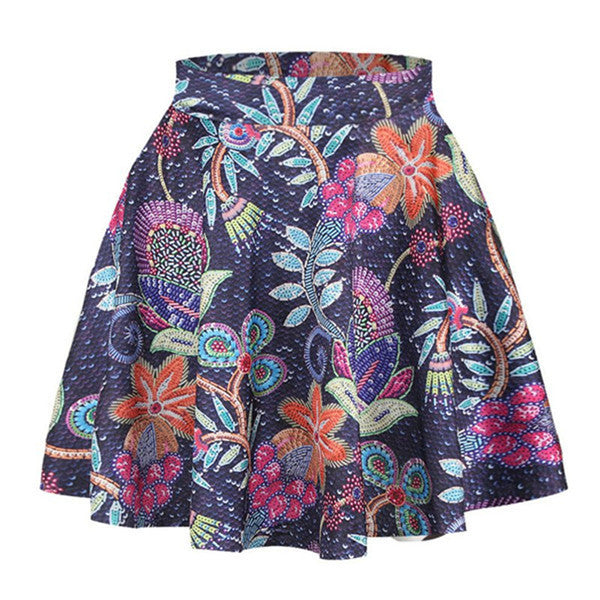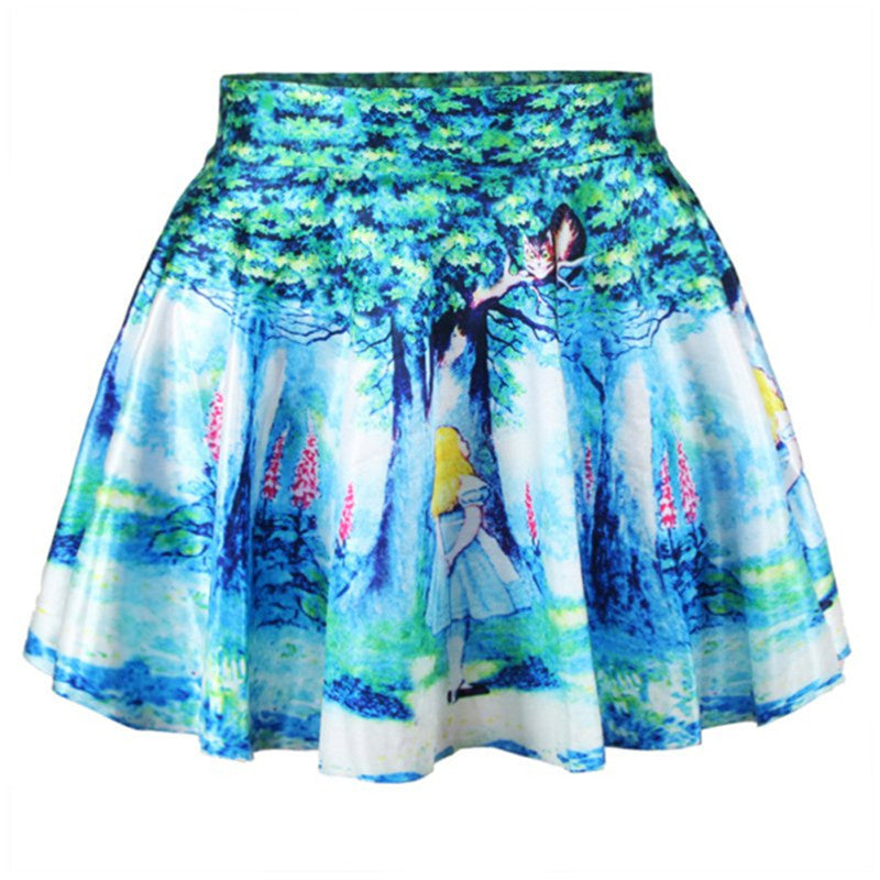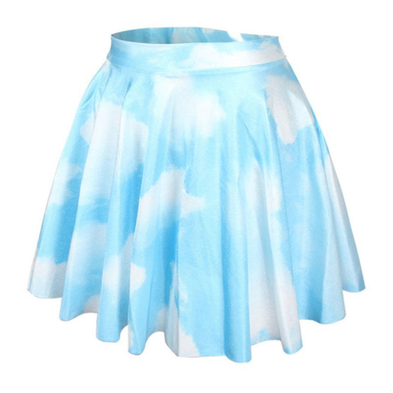 Women 3D Printed Short Mini High Waist Skirt Flared Pleated Skirts NW
