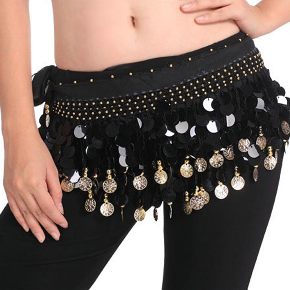 Women Belly Dance Hip Skirt Scarf Wrap Crystal Sequins Belt Coins Dancewear NW