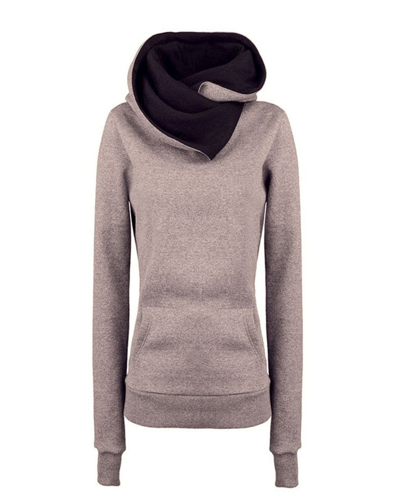 Women Casual Hoodies Lapel Hooded New Warm Sweatshirts Pullovers Solid Turn-down Collar ClothingHG NW