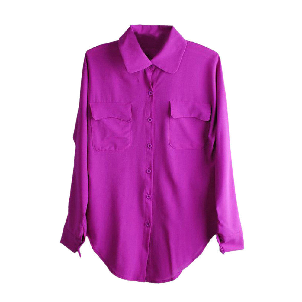 Women Chiffon Stand Neck Tops Tee Long Sleeve Shirt Casual Blouse Loose Shirt S-XL NW